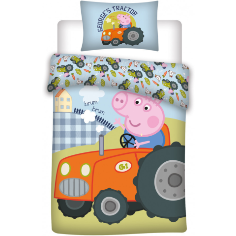 Peppa Pig, Peppa malac George's Tractor gyerek ágyneműhuzat Méret: Párnahuaz: 40×60 cm Takaróhuzat: 100×135cm Anyaga: 100% pamut