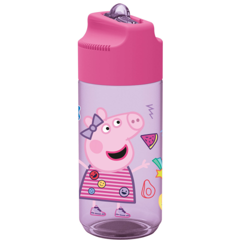 Peppa Pig, Peppa malac műanyag kulacs 430 ml Pattintható kupak, amely védi a szívószálat. Anyaga: műanyag BPA mentes Méret: 430 ml.