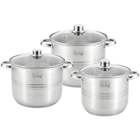 1 kép Perfect home 10224 Rozsdamentes edénykészlet / fazék szett üvegfedővel ~7/9/11 liter