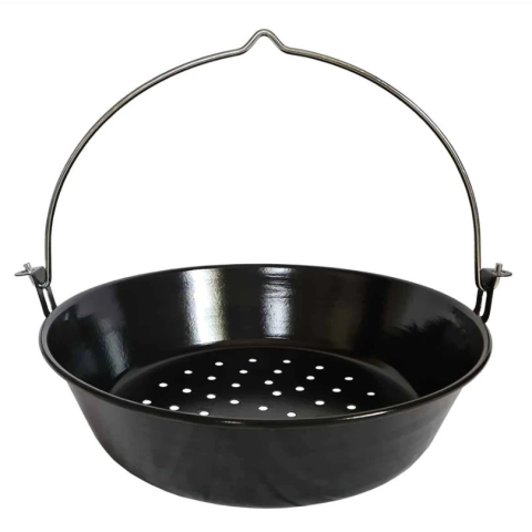 A hurkaabáló kosár zománcozott acéllemezből készült, így erős, masszív és hosszú távon is megbízható társ a konyhában vagy a disznótoron. Tágas, 52 cm-es átmérőjével és közel 59 cm-es teljes szélességével kényelmesen elfér