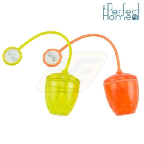 Perfect Home Teafilter mûanyag 12234 - Anyaga: mûanyag, szilikon - Mérete: a filter 5,5 cm magas, 4,5 cm átmérõjû, 21,5 cm hosszú a szilikon füllel együtt - Súlya: 26 g - Tisztítása: semleges folyékony mosogatószerrel mossa el. Kerülje a karcosodást okozó szerek és eszközök használatát. - Használata: Tegyen teafüvet az eper formába, majd áztassa bele forró vízbe! A szilikon fület a csésze szélére akaszthatja!