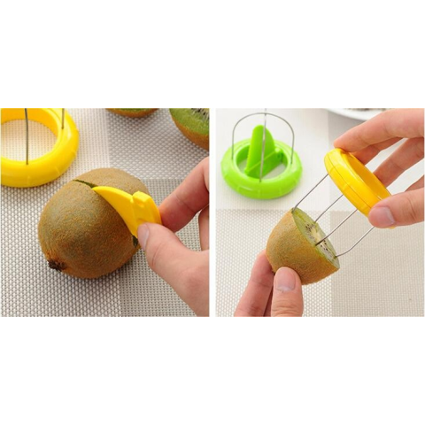Használata: Pattintsa ki a szeletelőt, majd vágja ketté a gyümölcsöt, a hámozót a kiwi héjáig betolva majd elforgatva könnyedé