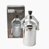 Anyaga: alumínium, szilikon, műanyag Mérete: 20 cm magas; 8 cm átmérőjű, 11 cm magas fedő nélkül Doboz mérete : 21,5*11,8*10,8 cm Bruttó súlya: 690 g Nettó súlya: 601 g Használható: gáz-, elektromos-, kerámialapos tűzhelyen Tisztítása: semleges folyékony mosogatószerrel mossa el. Kerülje a karcosodást okozó szerek és eszközök használatát. Kezelés: szétszerelés: a leszorító csavar felfelé történő csavarozása után a kengyelt hajtsa le, és a kupakot vegye le a kávéfőző aljáról. Vízfeltöltés előtt vegye ki a kávétartó tölcsérét és öntsön a víztartályba elegendő vizet a nívójelig. Kávétöltésnél helyezze be a kávéval töltött, peremén gondosan megtisztított tölcsért a víztartályba. A főzőbe közepes finomságú kávét tegyen. Összeszerelésnél győzödjön meg, hogy a tömítő gyűrű ép és tiszta állapotban legyen. Gondosan illesztve helyezze rá a kávéfőző aljára a kupakot, hajtsa fel a kengyelt, és a leszorítócsavar lefelé történő csavarásával jól rögzítse. A leszorító csavart csak kézzel szabad meghúzni, szerszám, pl fogó, használata tilos! Főzéshez helyezze a készüléket a hőforrásra, és tegyen a kifolyócső alá felfogó edényt. Mindig ügyeljen arra, hogy a kávét kis lángon vagy lassú tűzön főzze. A kávéfőzőhöz kizálólag őrölt kávé használható! Kevert kávét vagy más anyagot főzni nem szabad (pl. pótkávé, kakaó). Ne felejtse a tűzön a kávéfőzőjét! Helyes főzésnél mindig víz marad vissza a tartályban. Karbantartás: A főző használatát követően tisztításon és a vízkő szükség szerinti eltávolításán kívül különösebb karbantartást nem igényel. Ha a biztonsági szelep működése esetén dugulás történt, a készülék lehűlése után a kifolyócsövet és a szűrőlyukakat meg kell tisztítani!