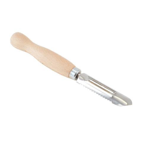 Fém hámozóA hámozó burgonya, vagy más zöldség és gyümölcs tisztítására szolgál. Fa fogantyúval és fém pengével rendelkezik.Technikai paraméterek:Hossz 17,5 cmSúly: 30 g