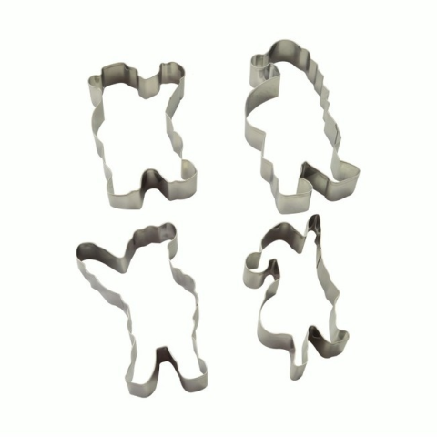 4-részes formakiszúró készlet Mikulás A készlet 4 db Mikulás formájú kiszúrót tartalmaz. A formák szárazsütemények kivágásához használatosak karácsonykor, vagy vagy más ünnepi alkalmakkor. A készlet rozsdamentes acélból készült.Technikai paraméterek:Darabszám: 4 dbMéretek: (ho x szé x ma): 10,5 x 6,5 x 2 cm13 x 6,5 x 2 cm10,5 x 7 x 2 cm10 x 5,5 x 2 cmSúly: 30 gCsomagolás tartalma: 4 Mikulás forma