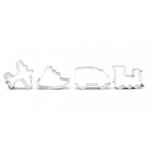 4db-os sütemény kiszúró készletA készlet 4 db formát tartalmaz közlekedési eszközök motívumokkal. Az ónozott fémlemezből készült formák szárazsütemények kivágásához használatosak.Technikai paraméterek:Darabszám 4 dbMéretek mozdony (ho x szé x ma): 6 x 4 x 2 cmMéretek repülő (ho x szé x ma): 6 x 6 x 2 cmMéretek: hajó (ho x szé x ma): 7 x 4 x 2 cmMéretek teherautó (ho x szé x ma): 7 x 4 x 2 cmSúly: 70 g