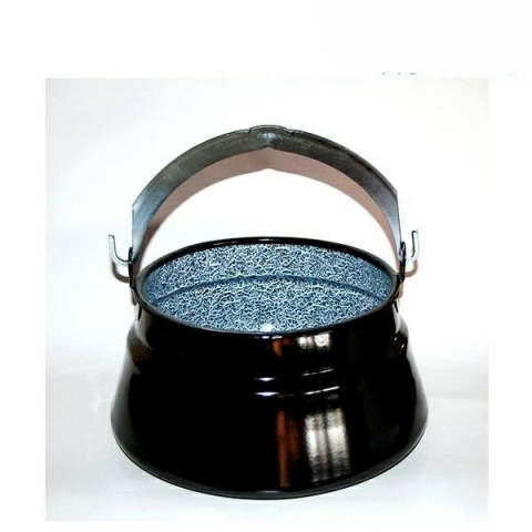 A halfőző bogrács kívül-belül zománcozott vasból készült, így rendkívül tartós, könnyen tisztítható és higiénikus eszköz a szabadtéri főzéshez. Felső átmérője 23,3 cm, alsó átmérője 31 cm, magassága 17,6 cm, űrtartalma