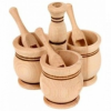 7-részes fűszertartó készlet, fa Fából készült szett, ami tartalmaz 3 fűszertartót, 3 kanalat és alátétet. Ételek megízesítéséhez használatos.Technikai paraméterek:Fűszertartók átmérői: 10 cmSúly: 100 g