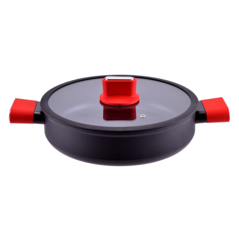 Anyaga: tapadásmentes bevonattal ellátott alumínium, műanyag, üveg, szilikon Mérete: 28 cm átmérő; 40 cm széles füllel; 7,3 cm magas; 12 cm magas fedővel Doboz mérete: 39*31*9,5 cm Nettó súlya: 2,04 kg Bruttó súlya: 2,38 kg Használható: gáz-, kerámialapos