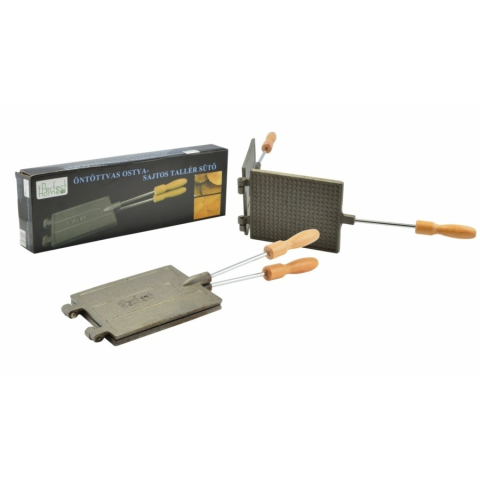Perfect Home 12517 Öntöttvas ostyasütő, sajtos tallér sütő Anyaga: öntöttvas, fém, fa Mérete: 16,5*13 cm a sütőfelület; 45 cm hosszú a nyéllel együtt Doboz mérete: 46*15*6 cm Bruttó súlya: 2,6 kg Nettó súlya: 2,4 kg Használható: nyílt láng felett és