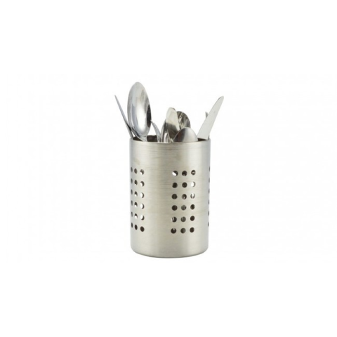 EvőeszköztartóÁllvány evőeszközök, főzőkanál és más konyhai eszköz tárolásához. A teljes kerület körüli lyukaknak köszönhetően, csepegtetőtálcaként is használható.Technikai paraméterek:Magasság: 14,5 cmÁtmérő: 10,5 cmSúly: 120 g