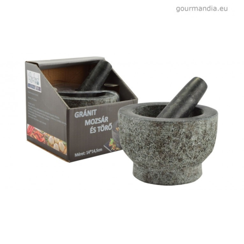 Perfect Home gránit mozsár törővel Anyaga: gránit Mérete: átmérő: 15 cm, magasság: 10 cm, törő: 14,5 cm hosszú és 4 cm átmérőjű Tisztítása: semleges folyékony mosogatószerrel mossa el! Kerülje a karcosodást okozó szerek és eszközök haszn