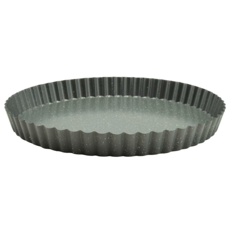 Sütőforma tapadásmentes bevonattal 27,5 cm Grey27,5 cm-es kör alakú forma besütőtt egytálételekhez és süteményekhez. Hullámos pereme van, így tálaláshoz is kiváló. Használható gáz- és elektromos sütőbe egyaránt. Neutrális folyékony mosogatószerrel ajánlatos tisztítani és ne használjon hozzá semmilyen fém eszközt, ami a felületét megkarcolhatná.Technikai paraméterek:Felső rész átmérője: 27,5 cmBelső átmérő: 25,5 cmMagasság: 2,8 cmSúly: 215 g