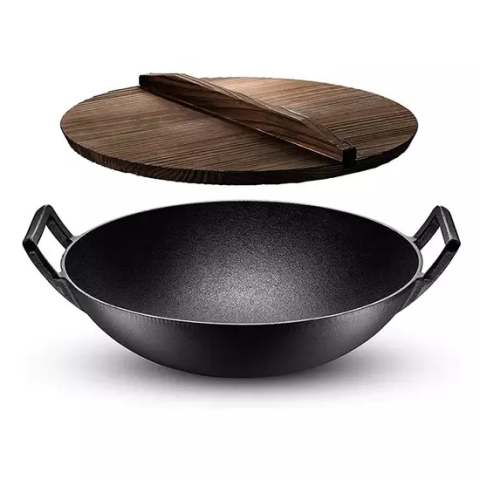Anyag: Öntöttvas (wok) és fa (fedő)
