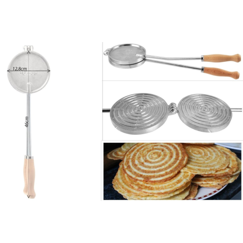 Anyaga: alumínium, fa Mérete:12,8 cm átmérőjű a sütőfelület; 46 cm hosszú a nyéllel együtt Súlya: 82 g Használható: szabadtűzön Tisztítása: Minden használat után meleg mosószeres vízzel mossa el, szárítsa meg. Ajánljuk: édes vagy sós ostyák sütéséhez Rece