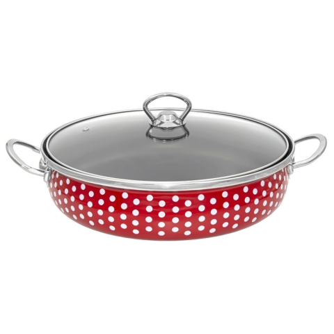 1 kép Perfect home Piros Pöttyös Zománcozott szeletsütő lábas 26 cm+üvegfedő 13271