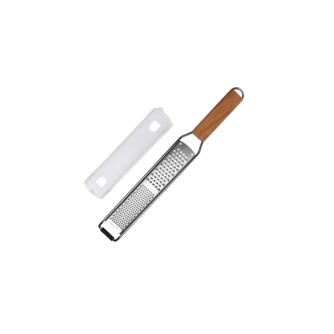 Anyag: A reszelő kiváló minőségű, rozsdamentes acélból készült, biztosítva a hosszan tartó élettartamot és az éles felületű reszelést. A tölgyfa markolat elegáns megjelenést kölcsönöz, a szilikon és gumi elemek pedig a kényelmes és biztonságos használatot támogatják.