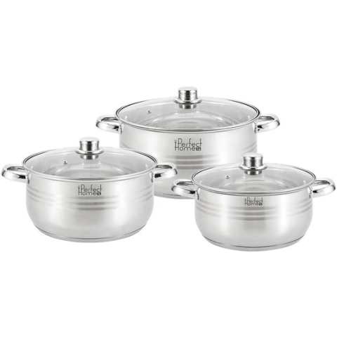 Perfect home Rozsdamentes Lábas Szett Üvegfedővel 5,5 / 7 / 8,5 Liter edény termékleírás