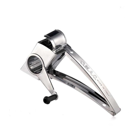 Sajtdaráló tekerős (La Grattugia) rozsdamentes 16565 Anyaga: rozsdamentes acél Mérete: 16,5 cm nyél; 5,5x5x8,3 cm fej Nettó súlya: 0,22 kg Használható: sajt, csokoládé, dió darálására Tisztítása: Semleges folyékony mosogatószerrel mossa el. Ker