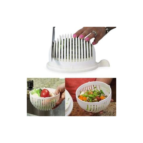 Multifunkcionális salátás tál Ebben a multifunkcionális tálban a salátát, megmoshatja, felvághatja, ill. fel is tálalhatja. A tál alsó részében rések vannak, így a felvágott salátát megmoshatja, leöblítheti és leszűrheti. A csomagoláshoz tartozik fedő is, ami biztosítja, hogy szeletetés közben a salát ne potyogjon le.Technikai paraméterek:Anyag: műanyagÁtmérő: 18 cmMagasság: 10,5 cmSúly: 283 g