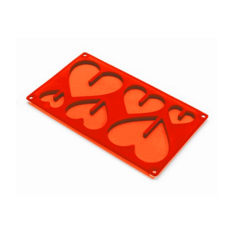 Szilikonforma csokoládé szívhez Szilikonforma csokoládé szívek készítéséhez. Sütemények díszítéseként is használható.Technikai paraméterek:Hossz: 29 cmSzélesség: 17 cmSúly: 178 g