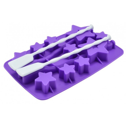 Szilikonforma jéghez, csillag Csillag alakú forma jég készítéséhez. A puha szilikonnal köszönhetően a jég könnyen kiszedhető. Italok, koktélok hűtéséhez használatos. A készlethez 2 műanyag pálca is tartozik.Technikai paraméterek:Hossz: 20 cmSzélesség: 12 cmMagasság: 2 cmSúly: 126 g