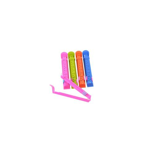 5 darab különböző színű, dátumozható zacskózáró csipesz, konyhai felhasználásra, műanyag zacskók lezárására.