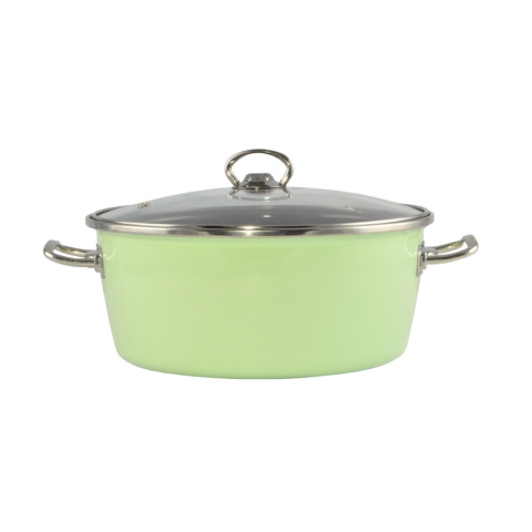 Zománcozott felületű edény 4,2 l 24 cmA 4,2 liter űrtartalmú és 24 cm átmérőjű edény zománcozott felülettel rendelkezik. Minden típusú tűzhelyhez használható. Az oldalakon két fogantyú található a sekély lábas jobb megfogása érdekében. A csomag tartalmaz egy gőzfurattal ellátott üvegfedelet.Műszaki adatok:Méret: 4,2 lBelső átmérő: 24 cmKülső átmérő: 26,5 cmSzélesség fogantyúkkal: 33 cmMagasság: 11,5 cmMagasság fedéllel: 16,5 cmTömeg: 1,76 kg