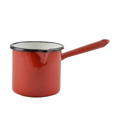 Zománcozott csőrös nyeles kiöntő, 0,6 L 14097Anyaga: zománcozott vasMéretei: belső átmérője: 10 cm; külső átmérője: 11,2 cm; magassága: 10 cm; szélessége nyéllel együtt: 23,4 cmŰrtartalma: kb 0,6 lSúlya: 210 gHasználható: gáz-, kerámialapos -, elektromos-tűzhelyen egyaránt.Tisztítása: Semleges folyékony mosogatószerrel mossa el. Kerülje a karcosodást okozó szerek és eszközök használatát.A kép csak illusztráció, a termék változatos színekben és mint