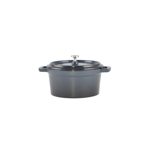 Elegáns, acélkék színű, 14 cm-es zománcozott öntöttvas lábas – stílusos és praktikus kiegészítő minden konyhába! Kiváló minőségű öntöttvasból készült, kívül-belül zománcozott bevonattal, amely nemcsak esztétikus, hanem kö