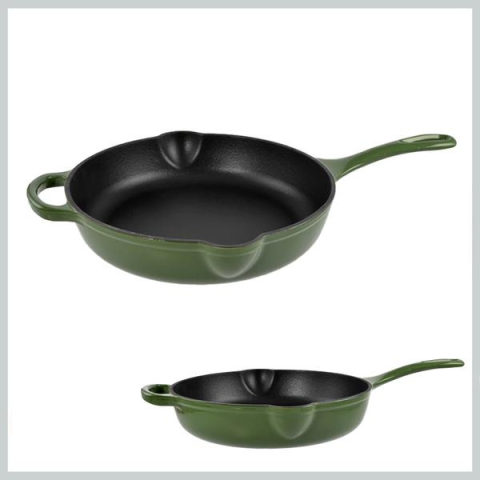 Perfect Home zománcozott öntöttvas serpenyő 2 csőrrel 27cm, zöld (80055)