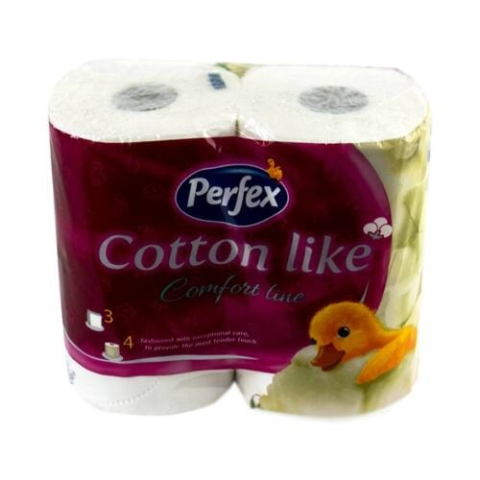 Toalettpapír PERFEX Cotton Comfort Line 3 rétegű 4 tekercses - 12.01124 - Toalettpapírok -