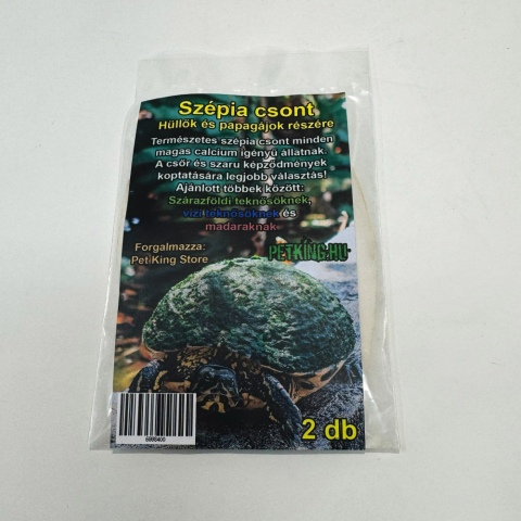 A Szépia Csont Duo csomag két kisméretű, természetes szépia csontot tartalmaz, amelyek esszenciális kalciumforrást biztosítanak teknősök, madarak és egyéb állatok számára. Különösen fontos a szárazföldi teknősök szarukávának egészséges koptatásához, egybe