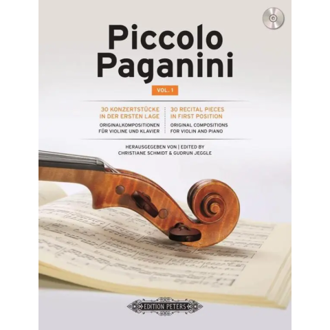 Piccolo Paganini contains 30 original pieces for violin and piano, including many rarely-heard works. Requiring only first position, this album offers early-stage students the opportunity to master a selection of musically sophisticated pieces. CD-mellékl