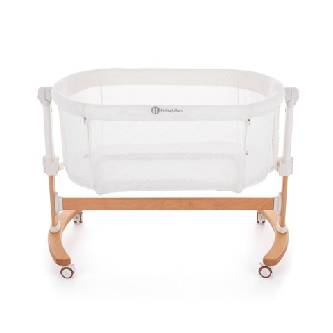 Babaágy - fa, matrac mérete 50 × 85 cm (Sz×H), kerekes, matrac, oldalsó nyitható rész, útitáska a csomag része, ovális, ringatható, összecsukható, mérete 87 × 55 × 95 cm (Ma×Sz×H), fehér és barna kivitel, terhelhetősége 9 kg, tömege 10 kg A hasznos PETITE&MARS ovális babaágy kényelmes és biztonságos alvóhely a baba számára. A nagyszerű PETITE&MARS babaágy kiváló minőségű anyagból készült, amely fa anyag. Kerekekkel rendelkezik, amelyek
