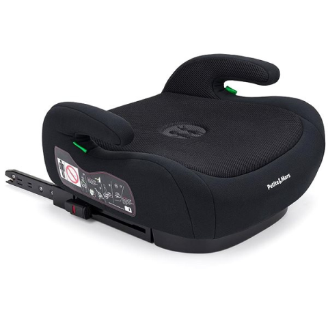 Ülésmagasító - gyermekek számára 22-36 kg testsúlyig 125 - 150 cm magasságig, rögzítés módja ISOFIX, i-Size (R129) tanúsítvány, lll. osztály (ülésmagasító) BESIP (ECE európai szabványoknak megfelelően), a gyermek biztonságáról autó biztonsági öv gondoskodik, menetiránynak megfelelő ülés, levehető huzat, párnázott karfa és övtartók, méretei 22 - 22 × 44 × 37 cm (ma × szé × mé), 4,5 kg tömeg, fekete szín A kompakt PETITE&MARS ülésmagasító 22-36 k