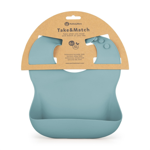 TAKE&MATCH szilikon előke A maradékok felfogására szolgáló zsebbel ellátott szilikon előke SAM nélkülözhetetlen kiegészítő a gyermek első etetéseinél. Kényelmet és magabiztosságot biztosít etetés közben, miközben segít megőrizni a tisztaságot az étkezések alatt. Ez egy olyan megoldás, amely megkönnyíti a szülők életét, és kényelmet ad a kicsik táplálása során. Az előke BPA mentes, élelmiszeripari minőségű szilikonból készült. Olyan kisgyermekek s