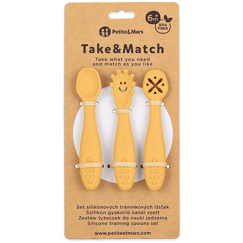 Petite&Mars Take&Match szilikon tanulókanál készlet, Intense Ochre, 3 db babaétkészlet 1 kép