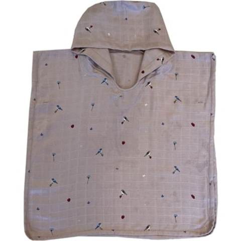 Petu Petu Muszlin poncsó kapucnival-Virágok& madarak(3-4év)