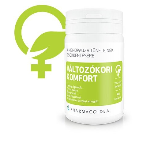 Pharmacoidea változókori komfort kapszula 30 db Napi 1 kapszula enyhíti a menopauza okozta nyugtalanságot és hőhullámokat, támogatja a normál pszichológiai funkciókat és az idegrendszer normális működését. Hozzájárul a hormonális aktivitás szabályozásá