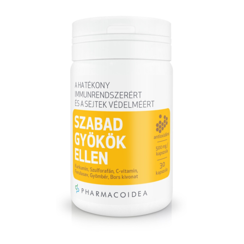 KURKUMA-, GYÖMBÉR-, BORS-, BROKKOLI mag kivonata, FERULASAV és C-VITAMIN A szabad gyökök a szervezet építőelemeit, így a testi sejteket és az azokat felépítő szerves molekulákat (fehérjéket vagy a sejtek magjában található örökítő anyagot, a DNS-t) k