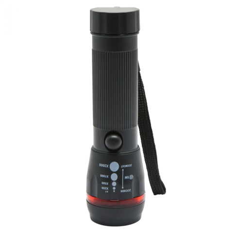 Kézbe illeszkedő, könnyű műanyag ház csúszásmentes bordázattal Csepp- és porálló, gumi borítású on/off kapcsolóval 1 LED-es világítás fókuszállítási lehetőséggel (Zoom In-Out) Működéséhez szükséges 3xAAA elem vagy akku amely nem tartozék Csuklóp