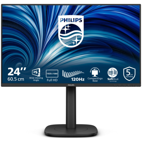 16:9, 1920x1080, 23,8", Full HD, LED, IPS, 120Hz, 5ms, 5M:1, 300cd/m2, VGA, DP, 1xHDMI, Hangszóró, Black, Állítható magasság, Pivot