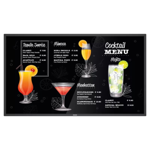 Philips 43BDL3117P/00. Képernyő méret: 109,2 cm (43"), Képernyőfelbontás: 3840 x 2160 pixelek, HD típusa: 4K Ultra HD, Kijelző technológiája: LCD, Válaszidő: 8 ms, Alap képméretarány: 16:9, Vízszintes látószög: 178°, Függőleges látószög: 178°. Beépített hangszóró(k). Beépített USB-elosztó, USB-elosztó verziója: 2.0. VESA szerelés. Termék színe: Fekete