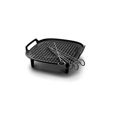 Grillsütő készlet XXL Ezzel a különleges Philips Airfryer grillsütő készlettel elkészítheti az összes kedvenc grillreceptjét. Sajátítsa el, hogyan grillezhet ízletes húsokat és zöldségeket egyszerűen, gyorsan és egészségesen. Tapadásmentes grillezőlap tartozék Tökéletesen grillezett halak, húsok és zöldségek az XXL-es grillezőlapnak és a jellemző kiemelkedésekkel ellátott egyedülálló lyukasztott felületnek köszönhetően. A tapadásmentes felület révé
