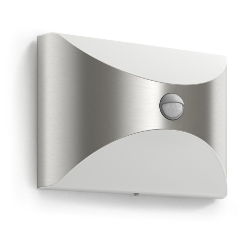 A rozsdamentes acélból készült, mozgásérzékelős Philips myGarden Sunset LED fali lámpa stílust és erőt kölcsönöz a falnak. Karcsú, lekerekített formájával és dekoratív metszett kidolgozásával bőséges, meleg, fehér LED- fényt irányít felfelé és lefelé