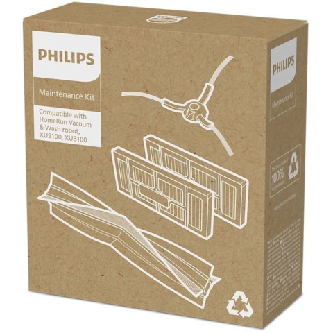 Kiegészítő készlet - eredeti cserekészlet a Philips HomeRun 9000 Series készülékekhez, ez az eredeti cserekészlet 1 darab főkefét, 1 darab oldalkefét és 2 darab HEPA11 szűrőt tartalmaz, kompatibilitás XU9100/10 A robotporszívóhoz minőségi pótalkatrészek találhatók a Philips HomeRun 9000 tartozékkészletben. A csomag része egy HEPA-szűrő, amely a finom port felfogja, mielőtt a levegő visszakerülne a helyiségbe