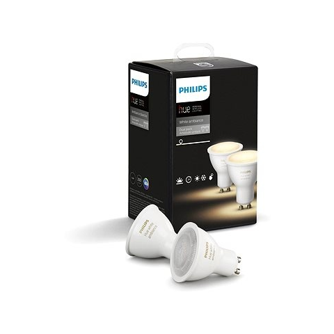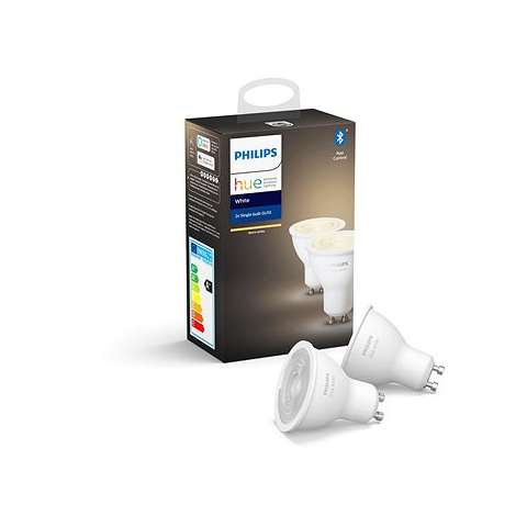 LED izzó - okos funkciókkal, E energiaosztály, 5,2 W energiafelhasználás, 230 V feszültség, szabályozható fényerő, 400 lm fényáram, meleg fényű (2700 K), 80 Ra színvisszaadási index (CRI), 5 cm átmérő, Bluetooth csatlakozás, Apple Home, Google Home, Philips Hue kompatibilitás, angol nyelvű alkalmazással, 25000 óra élettartam, 2 darab a csomagban Není vyplněn Alternativní text k fotografii!Philips Hue White 5,5 W LED izzó GU10 foglalattal, 2 db a csomagbanVilágítá