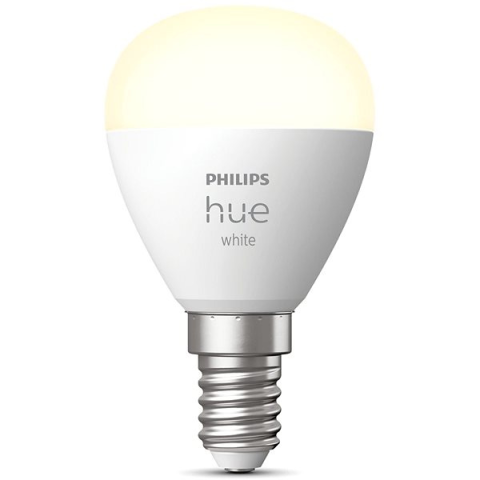 LED izzó - okos funkciókkal, G energiaosztály, 5,7 W energiafelhasználás, 230 V feszültség, szabályozható fényerő, 470 lm fényáram, meleg fényű (2700 K), 80 Ra színvisszaadási index (CRI), 4,5 cm átmérő, Bluetooth csatlakozás, Apple Home, Philips Hue kompatibilitás, angol nyelvű alkalmazással, 25000 óra élettartam Není vyplněn Alternativní text k fotografii!Philips Hue White LED izzó 5,7 W teljesítménnyel és E14 foglalattalA Philips világítástechnikai speciali