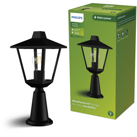 Kerti világítás - oszlop, E27 foglalat (az izzó nem része a csomagolásnak), 25 W max. teljesítménnyel, anyaga: alumínium, fém és üveg, IP44 védelem Szereted, ha a garázs és a felhajtó környéke jól ki van világítva, vagy csak a kertbe keresel fényforrást? Akkor próbáld ki ezt a remek Philips által tervezett kerti lámpát. Ezzel a minőségi oszlop fo